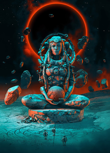 Armored SuitMundo Azul transita hacia lo religioso, no es frecuente en la CF pero tampoco extraño que los seres humanos provenientes de culturas tecnológicas y profundamente civilizadas retomen temores y adoraciones de animales y hasta estructuren una religión en torno a sus costumbres y relaciones con la colonia tras fracasar su intento original de asentamiento ("El planeta de los dinosaurios" de Ann McCaffrey y "West of Eden" de Edgar Pangborn").