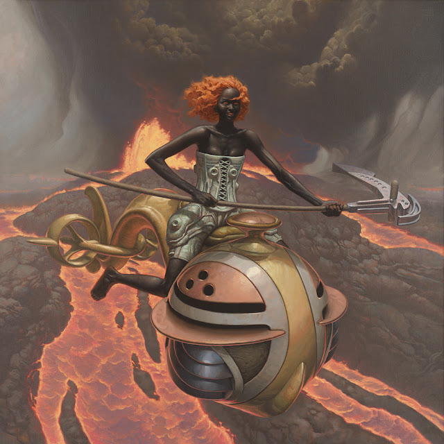 Jewelled TorqueAnte tal aluvión decidí ir cerrando (o prestando menos atención) a mi saga del Imperio Decadente, que el real está en barrena), y expandir para reemplazarla a una línea de relatos caótica, repleta de ruptura de límites, menos sometida a parámetros, o sea libre, que recupere una cierta sensación juvenil, que denominaré Multiversual Revisado, ahora también acompañando a Horizonte Cercano; en cuanto a quien ilustraría acepté una sugerencia de Arcadio y Mark Zug fue el elegido.